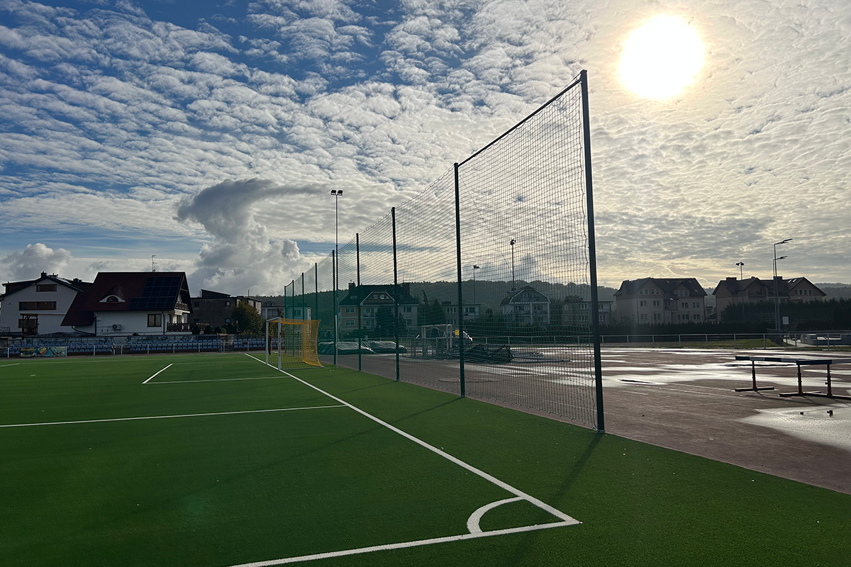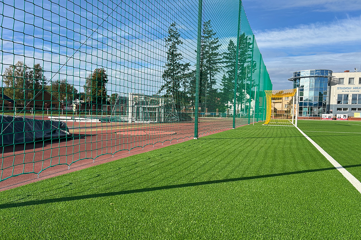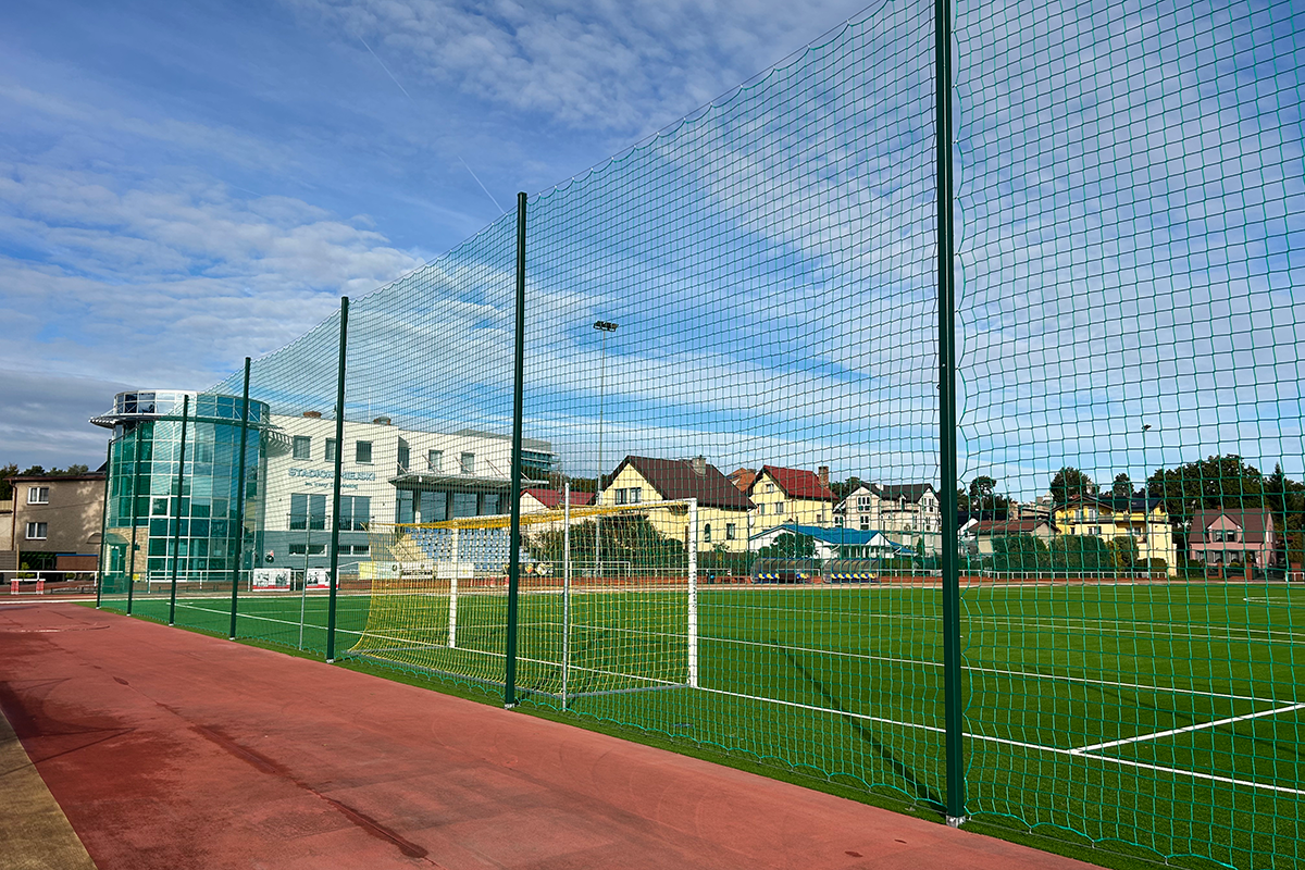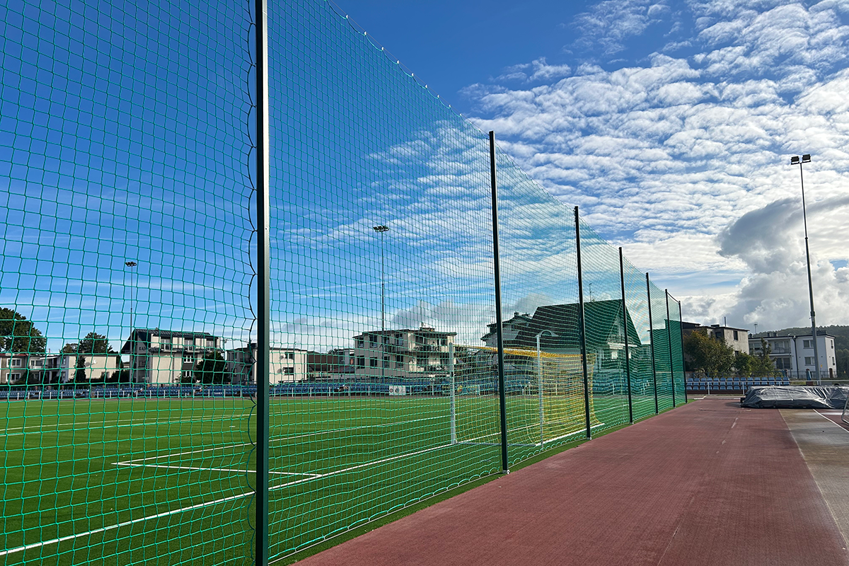 OUTDOOR BARRIER NETTING MOUNTED ON STEEL POSTS